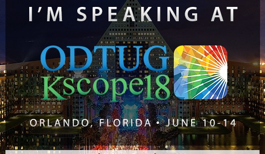 So I am super excited for Kscope18 which is now only days away. Last year I had the pleasure of speaking at Kscope17 in San Antonio, and man was I hooked from day one. I made it my mission to make sure I was speaking and/or attending Kscope18, and as you can see from the image above, mission accomplished!!