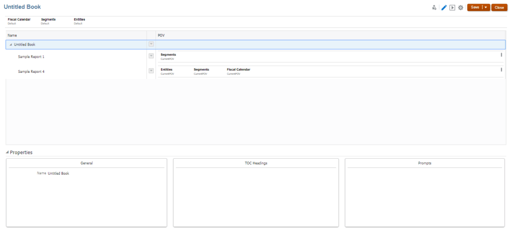 The great feature of Books is that the system generates a TOC based on the reports, POVs, sections, etc. Narrative Reporting’s Books is no exception but takes it one step further. Using the same framework associated with PDF Report Packages, users have to upload a Microsoft Word document with an inserted TOC to define the formatting and layout. Additionally, the Word document can also contain additional pages with content, such as a cover page and blank pages before or after TOC. In other words, no more system-generated TOC!